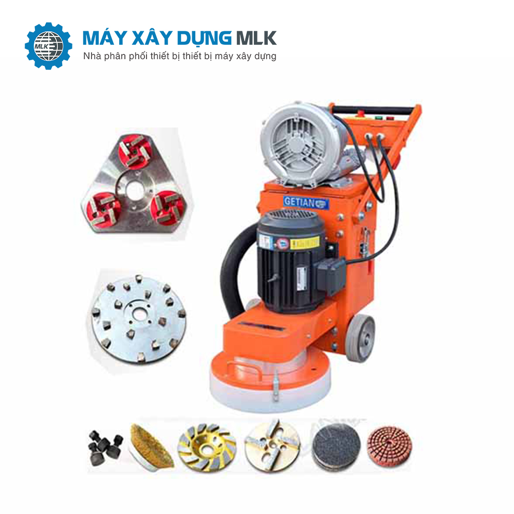 Thiết bị sử dụng đĩa mài kim cương kết hợp động cơ mài công suất lớn, giúp loại bỏ lớp bê tông gồ ghề, tạo bề mặt phẳng và chuẩn bị cho các bước thi công tiếp theo như sơn epoxy hoặc đánh bóng sàn.
